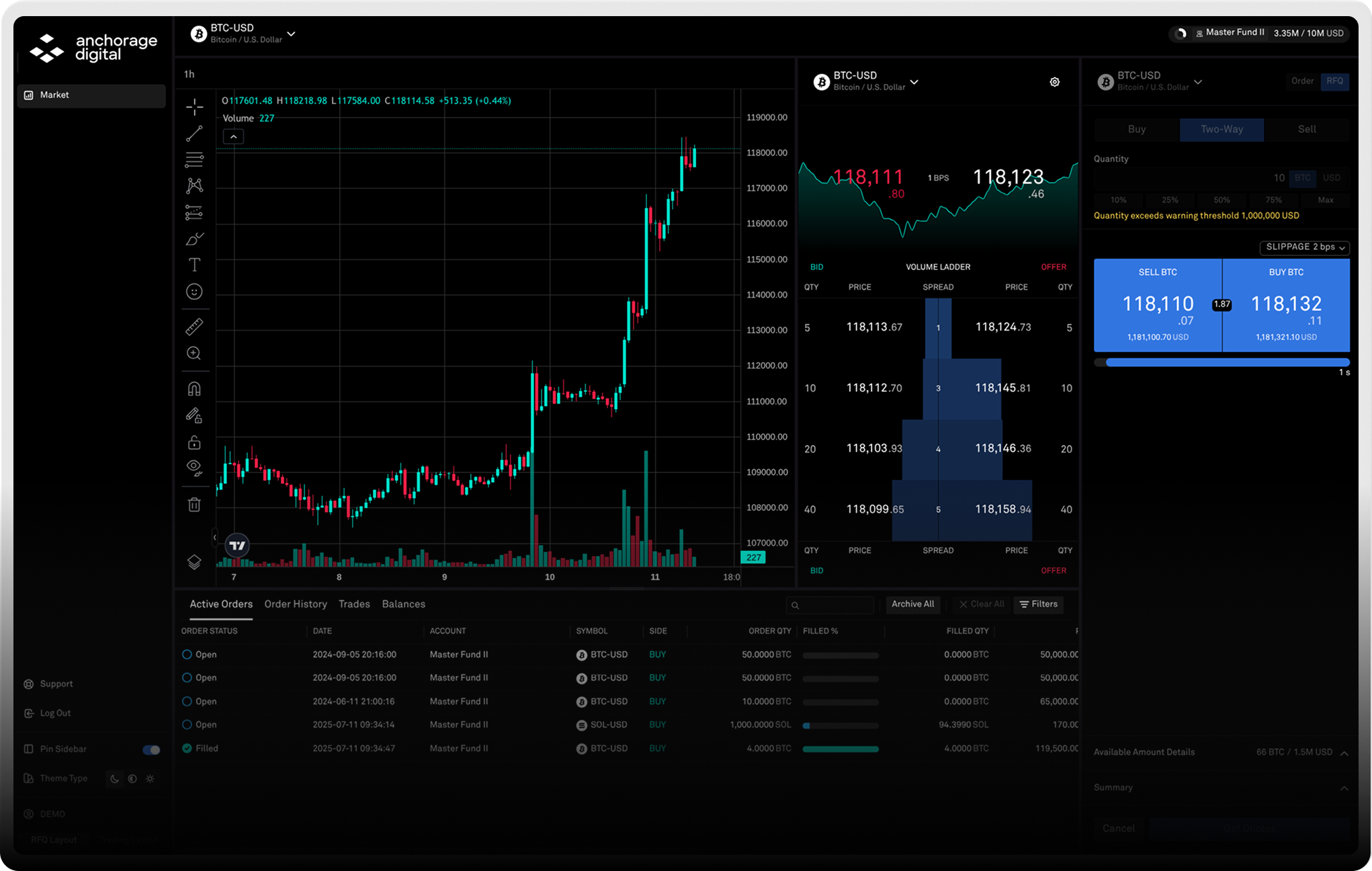 Designed to meet the complex trading needs of institutions, Anchorage Digital enables traders to access deep liquidity with tight pricing—even in the most difficult market conditions.